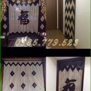 Mành thờ hạt gỗ hương chữ che phong thủy bàn thờ cho chung cư