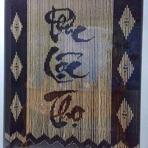 Mẫu rèm cửa bằng hạt gỗ Bồ Đề che phong thủy Bàn Thờ với chữ cát tường Phúc – Lộc – Thọ, 6 quả trám, trên bằng dưới sóng. Màu hạt vàng nhạt làm nền làm nổi bật chữ màu mận, tạo nên bộ rèm trang trí Bàn Thờ.